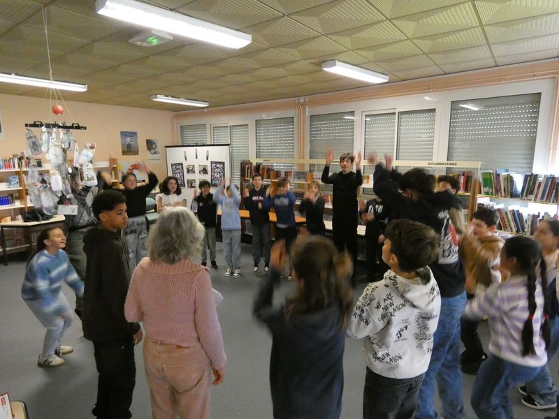 Léa Pelletant, comédienne, est venue animer des ateliers de techniques théâtrales avec les élèves de 6e de Mmes Debetz et Baron. Des exercices nécessitant concentration, mémorisation, attention aux autres ont été proposés ainsi qu’un exercice d’improvisation pour travailler l’expression des émotions, pas si facile !